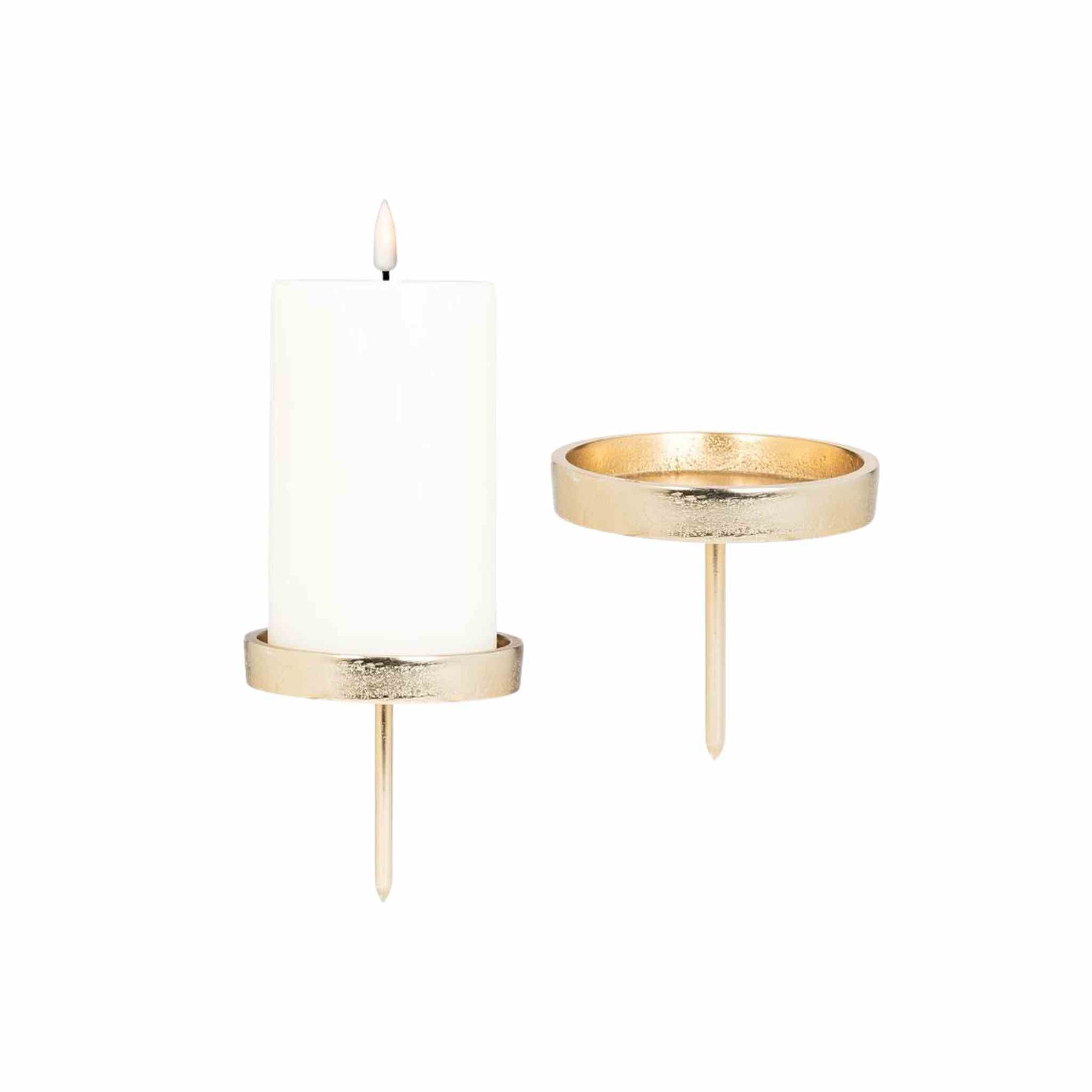 Create an elegant centerpiece by combining this gold coloured aluminum pillar holder on a stake with a wreath or planter, perfect for adding ambiance to outdoor gatherings or garden parties.