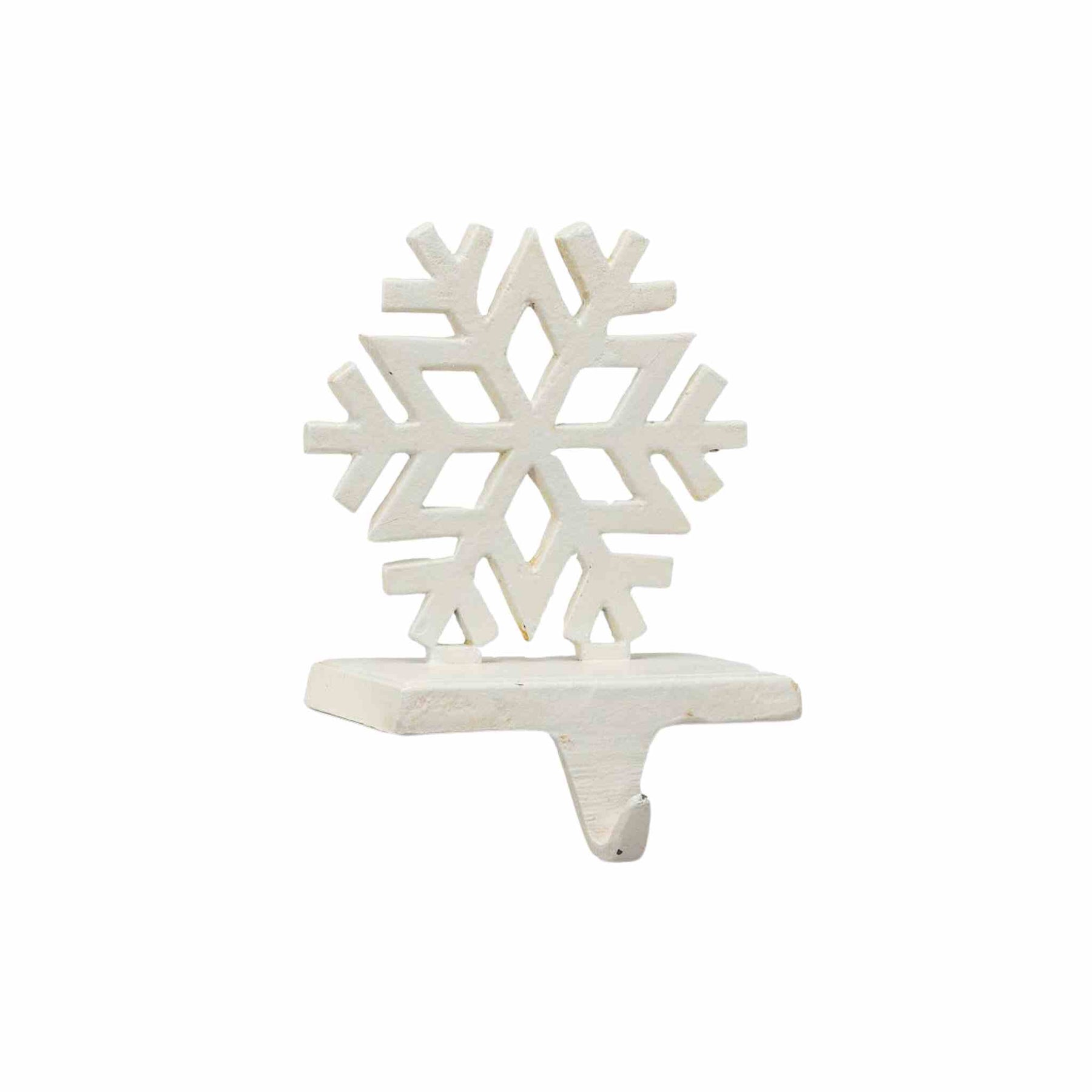 Hang your Christmas stockings in sturdy, seasonal style with this simple snowflake stocking holder. Crafted out of durable cast iron and painted matte white, this stocking holder is accented with a bold geometric snowflake to make it easy for Santa (or any of his helpers) to find and fill!