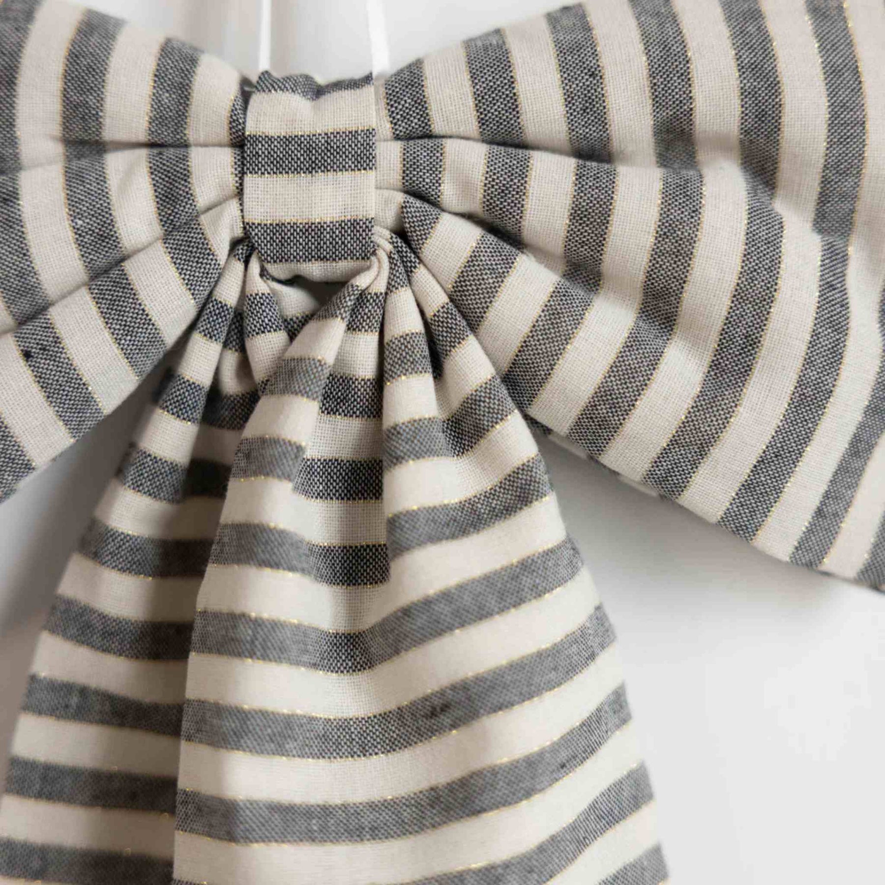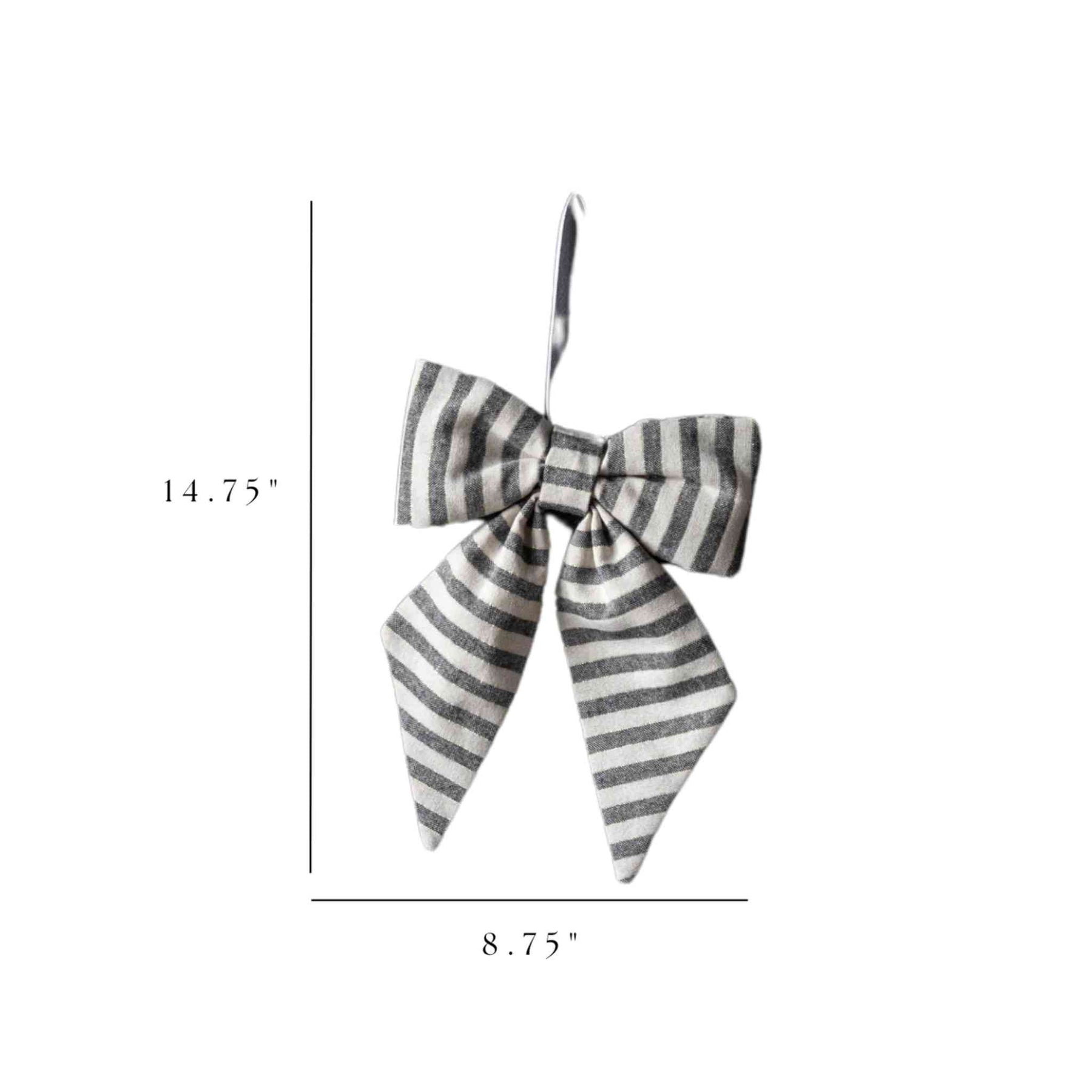 With its striking soft charcoal striped detailing, this bow can easily be transitioned from holiday, fall or spring decor.