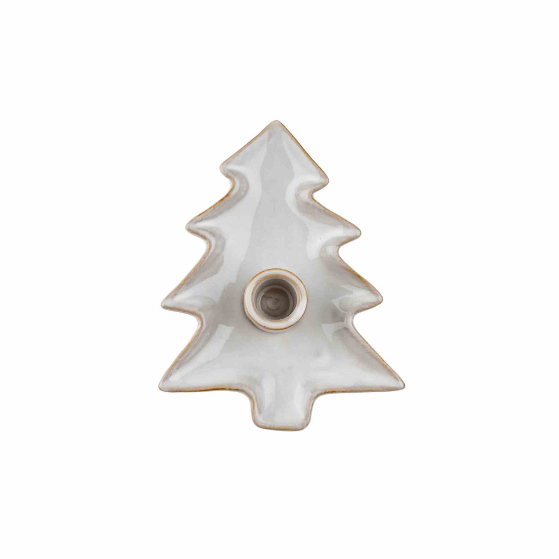 Featuring a glossy white glaze and a sculptural Christmas tree shape, this holder adds a festive touch to any space. Designed for taper candles, its base catches drips, combining practicality with seasonal charm. Whether placed on a mantel, dining table, or holiday display, this piece enhances your home with a cozy, timeless glow.