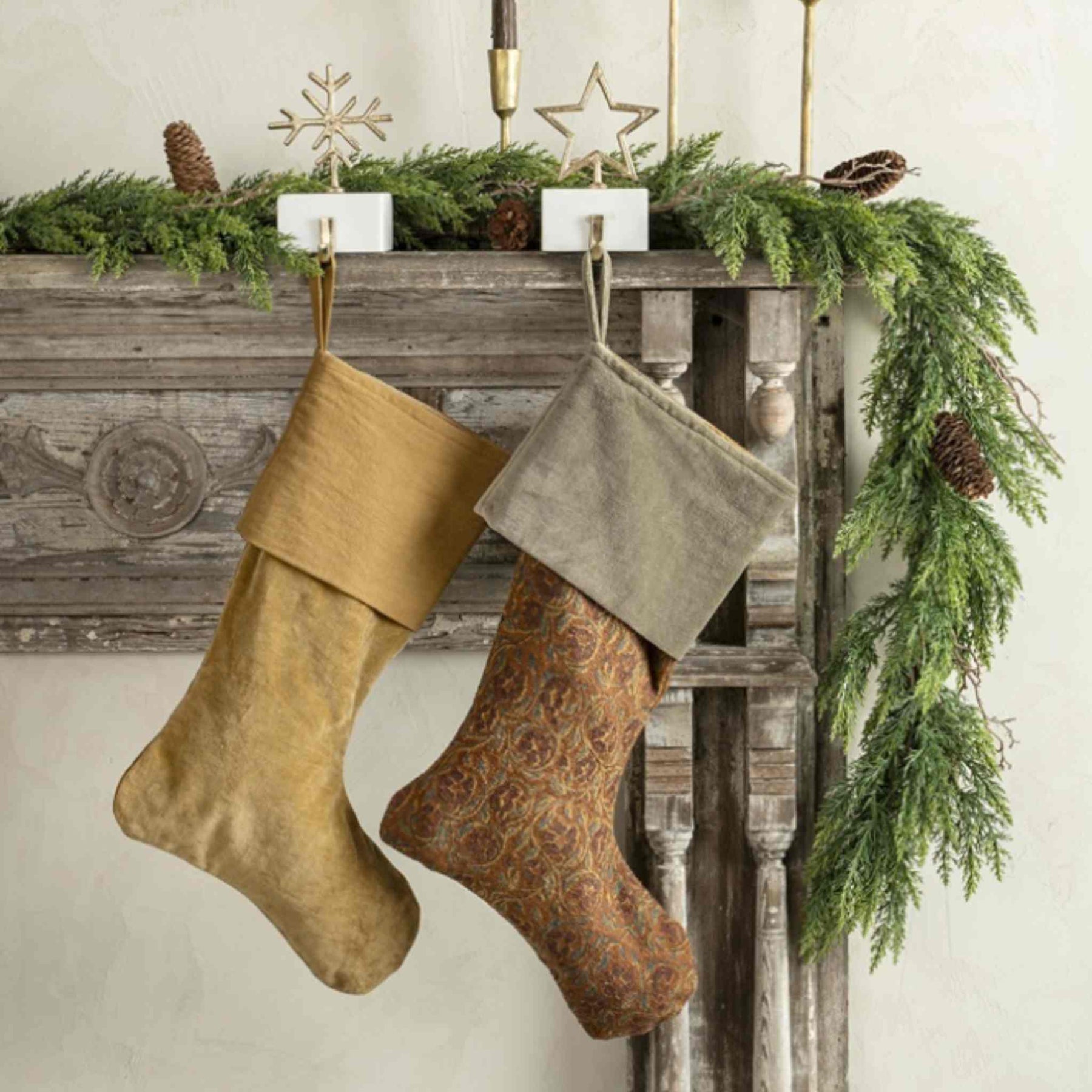 in Tamarind, a rich brown hue that brings warmth and sophistication to any festive setting or Camel, a warm, golden hue that exudes understated luxury. Whether hung on the mantel, the end of a bed, a stair rail, or a shelf, it adds a refined yet cozy touch to your holiday styling. Designed to be both durable and elegant, it's perfect for filling with gifts and becoming a cherished part of your seasonal traditions.