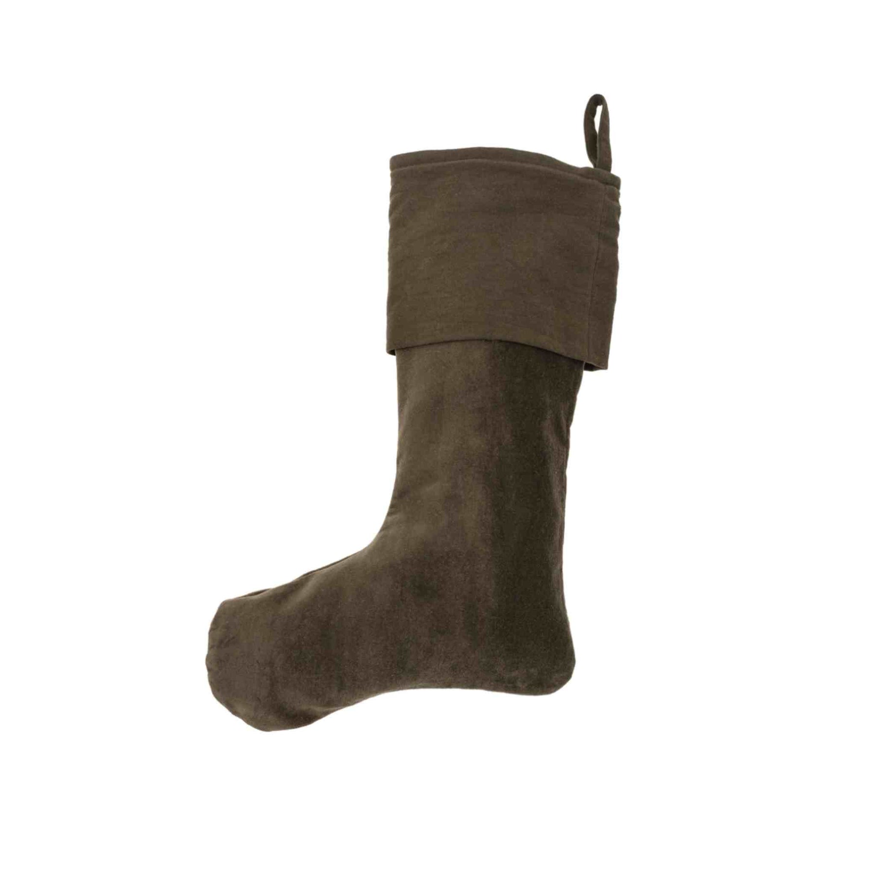 Material: Made from luxurious stone-washed velvet and complemented by a matching stone-washed cotton cuff, this stocking exudes classic charm and artisanal craftsmanship.
