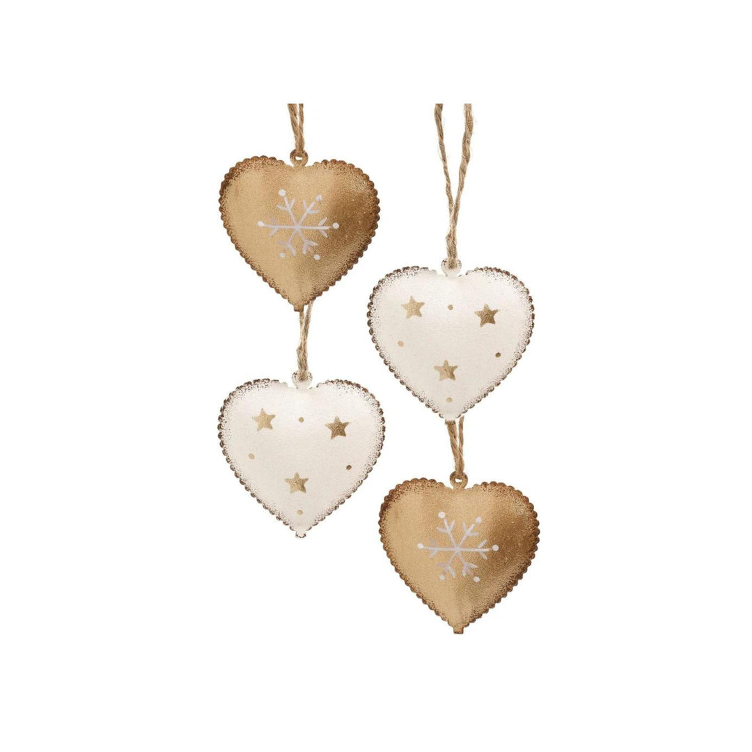 ORNAMENT BOX S/8 HEARTS, WHITE/GOLD