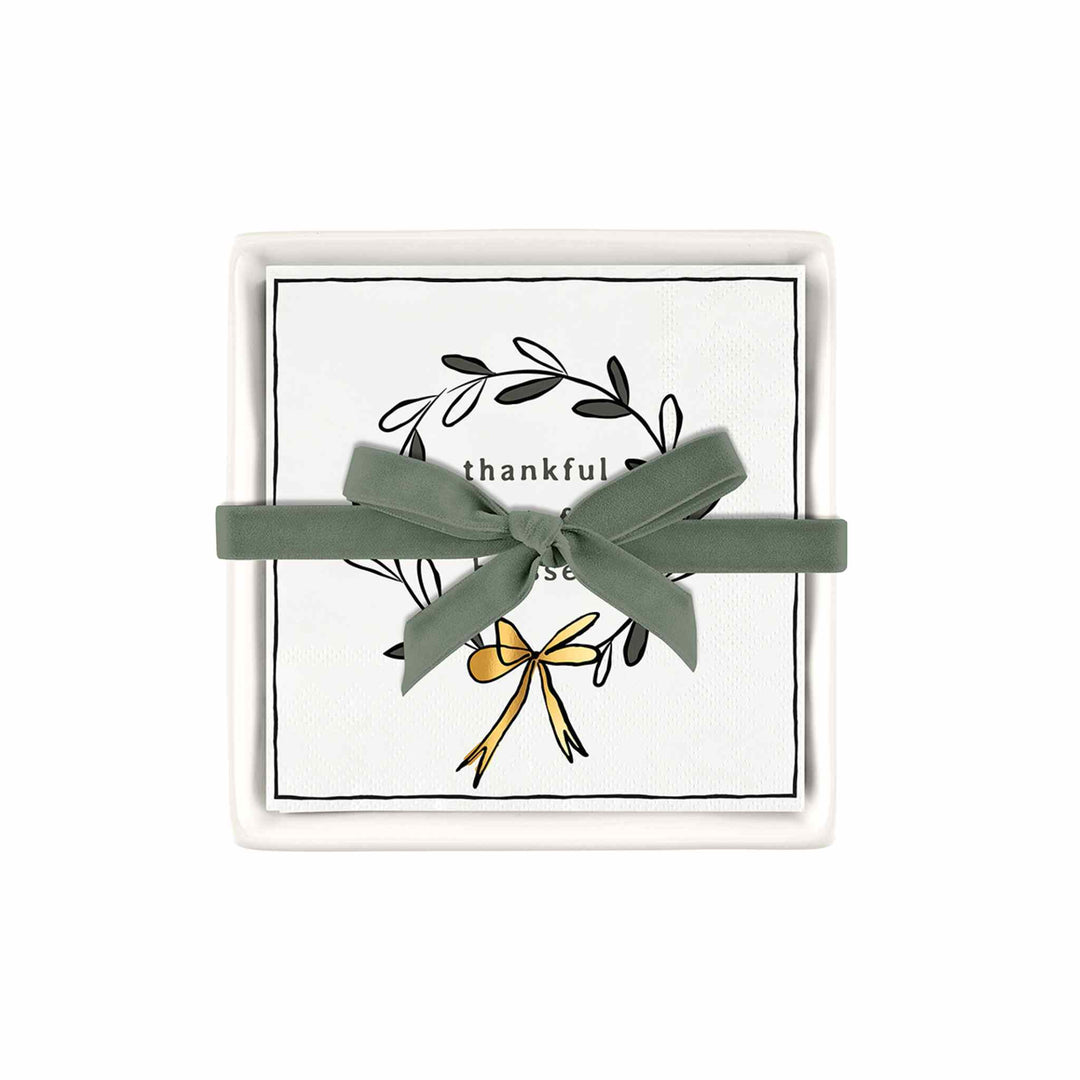 CERAMIC TRAY+ NAPKINS, THANKFUL