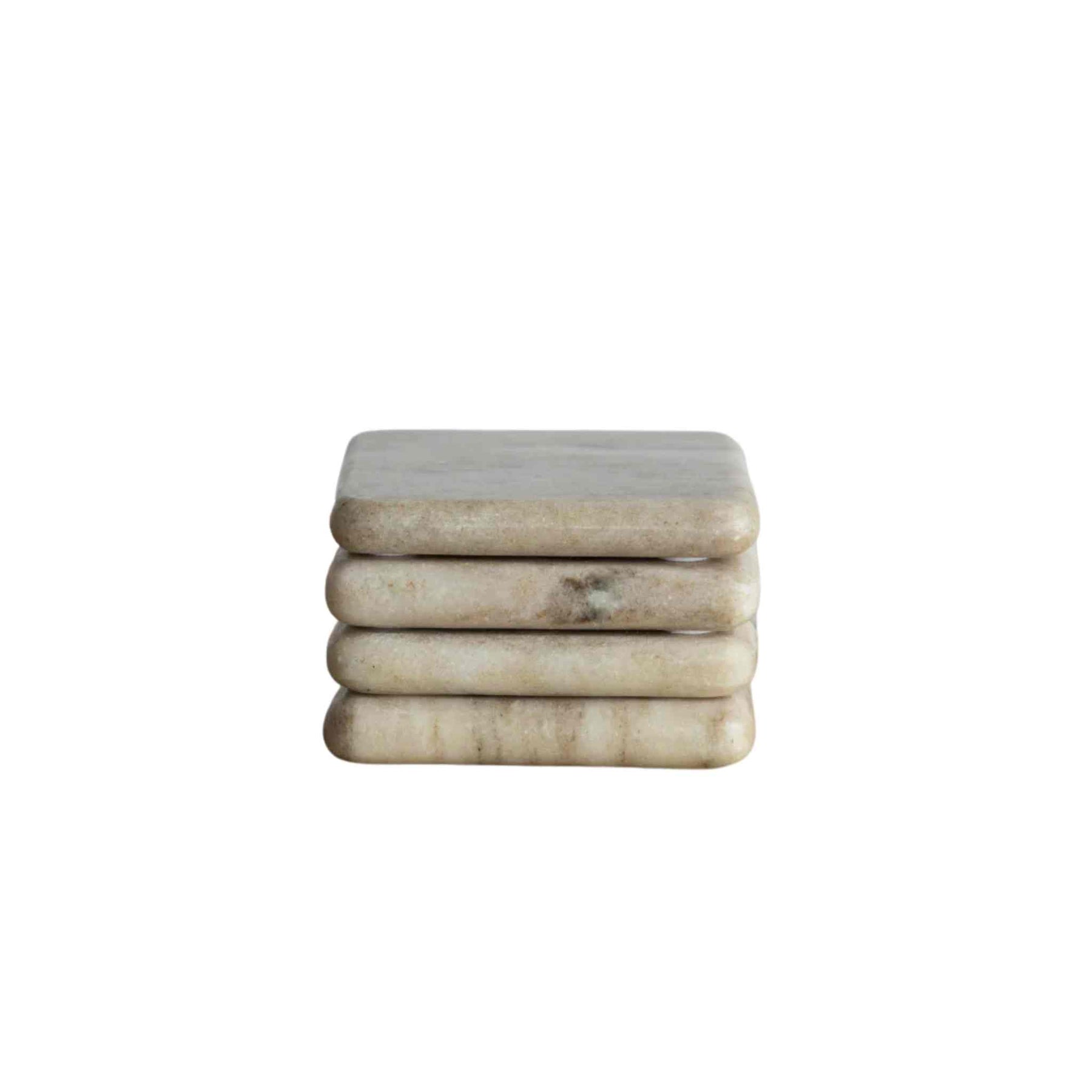 Made from high quality marble, these coasters are not only a stylish addition to any space, but also a practical solution to protect your surfaces from water stains and scratches. Elevate your hosting game with this luxurious set of 4 coasters.