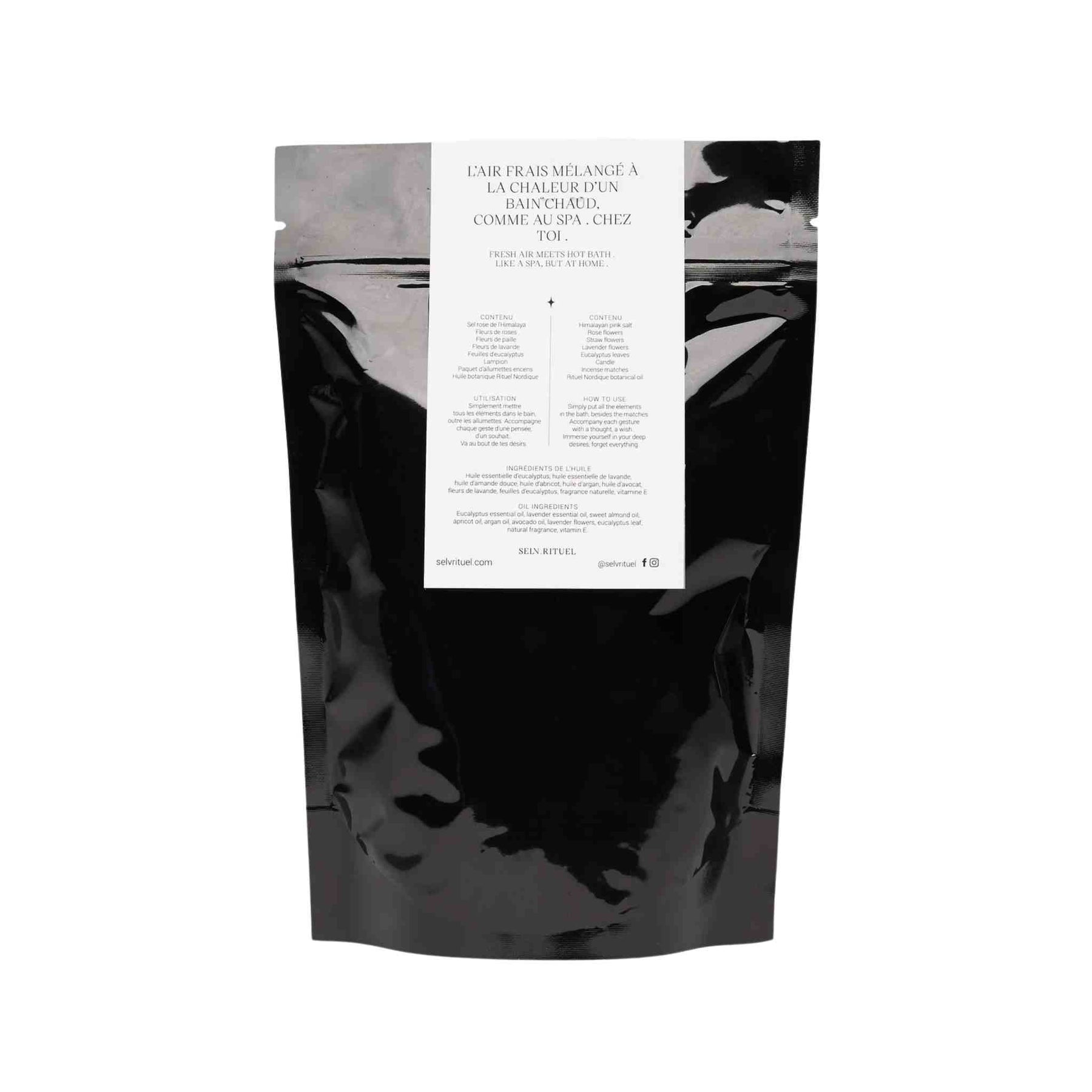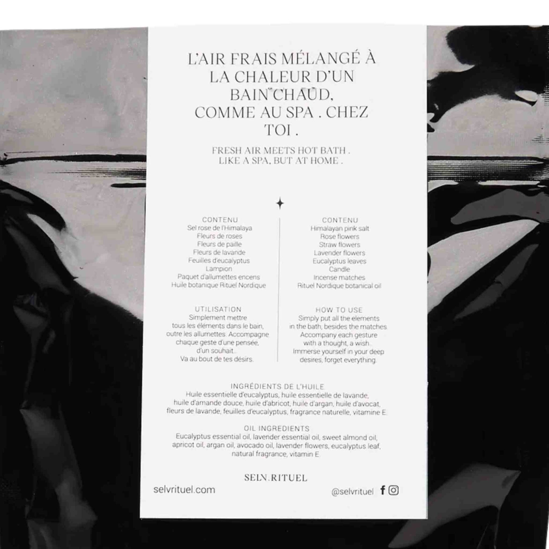 A turnkey bath ritual with lavender and eucalyptus. The fresh air, the aromas of lavender and eucalyptus blend with the warmth of your hot bath. It's like at the spa, but it's your house. Calm enters you through your nostrils and every pore of your skin.