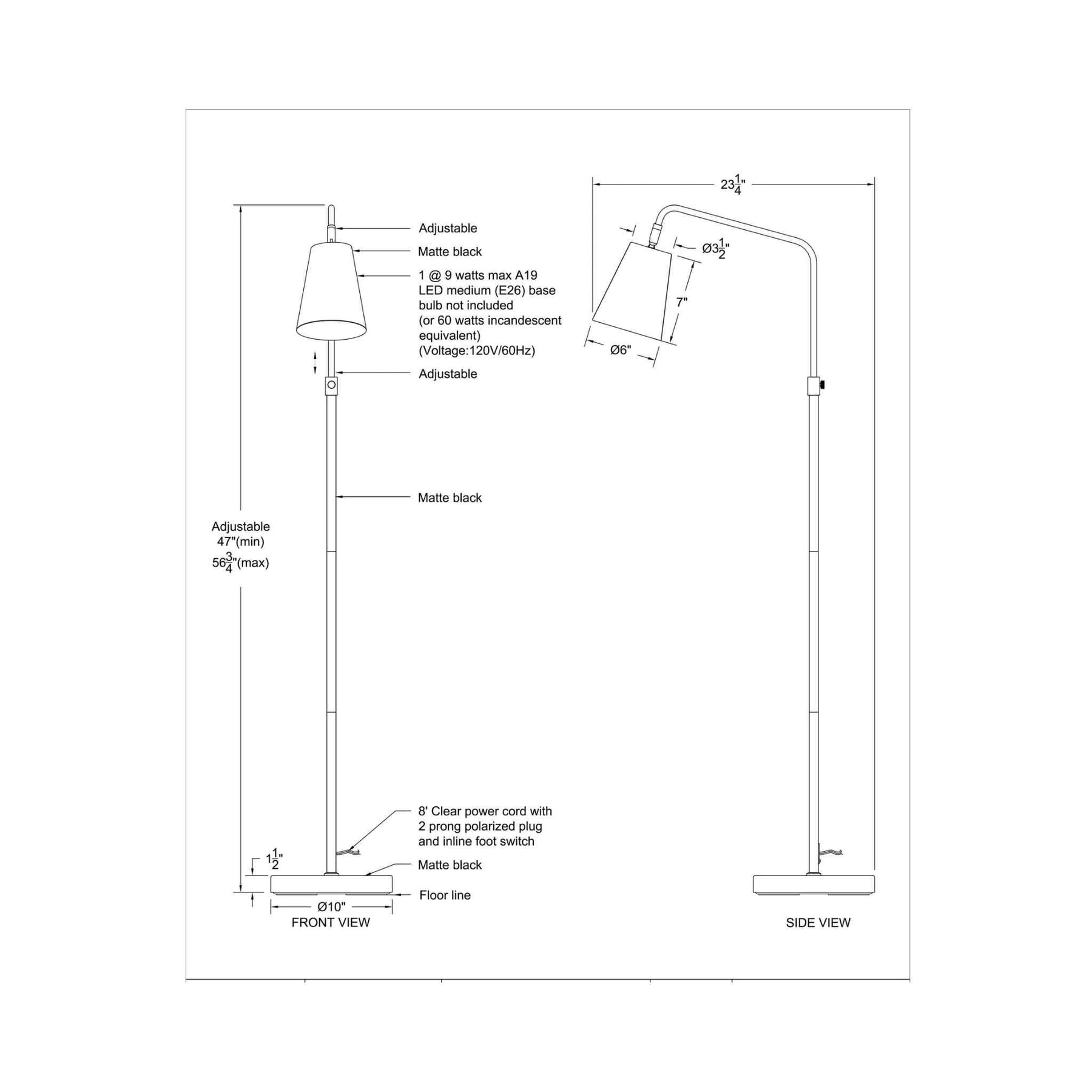The Nottingham floor lamp is poised to help create the perfect lighting in any room. Ideal for a cozy reading corner, near a sofa or next to a bed, this adjustable-height fixture effortlessly delivers ambient light anywhere it stands. Its allover matte black finish and clean-lined design blend stylishly with many decorating schemes.