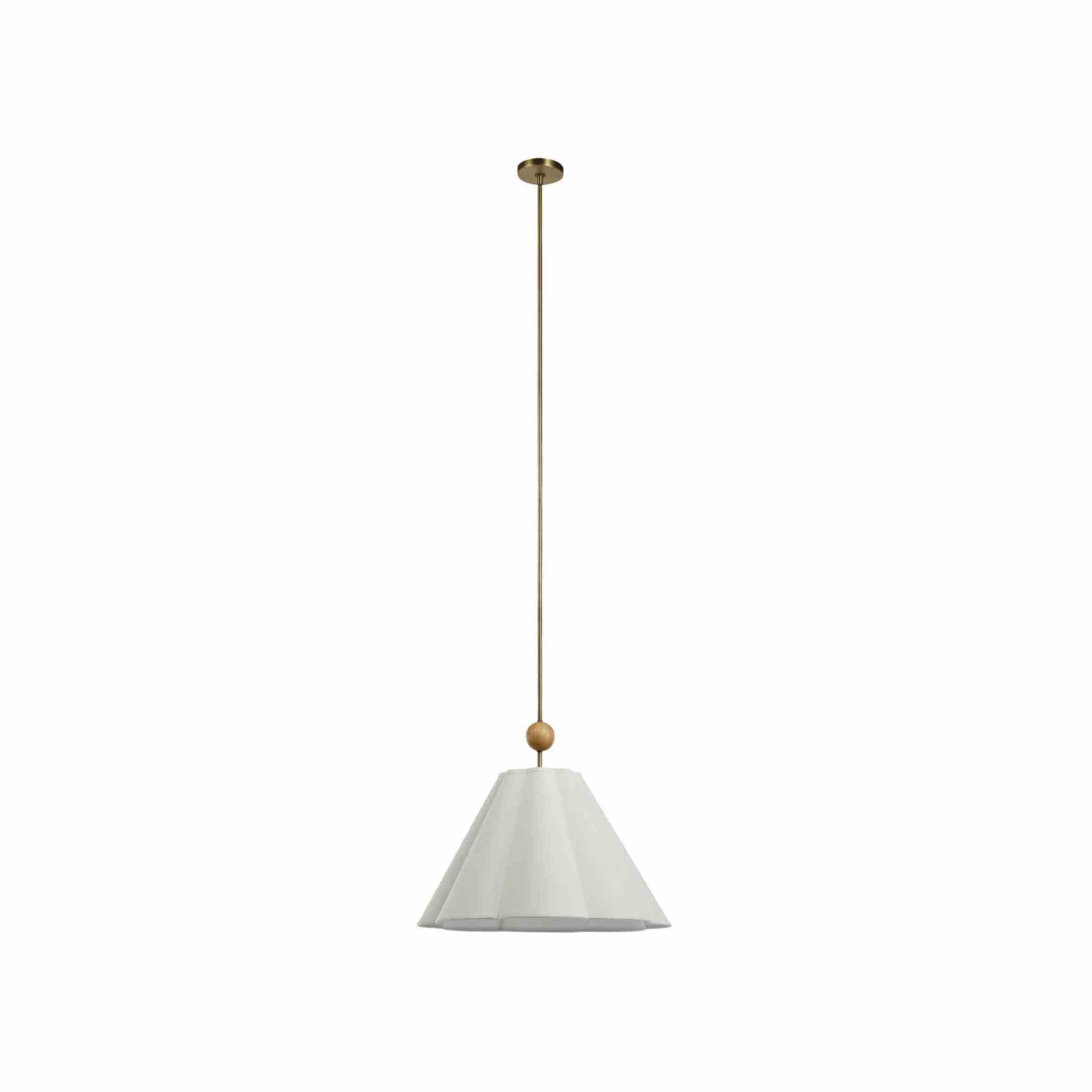 The Anna ceiling pendant brings sculptural presence to a room, offering a refined take on lighting statements. Its flared matte off-white shade feels modern, intentional and a little bit dainty, while oak and dark antique brass accents add earthy sophistication. At 25 inches wide, it commands attention either as a standalone centrepiece or in multiples.