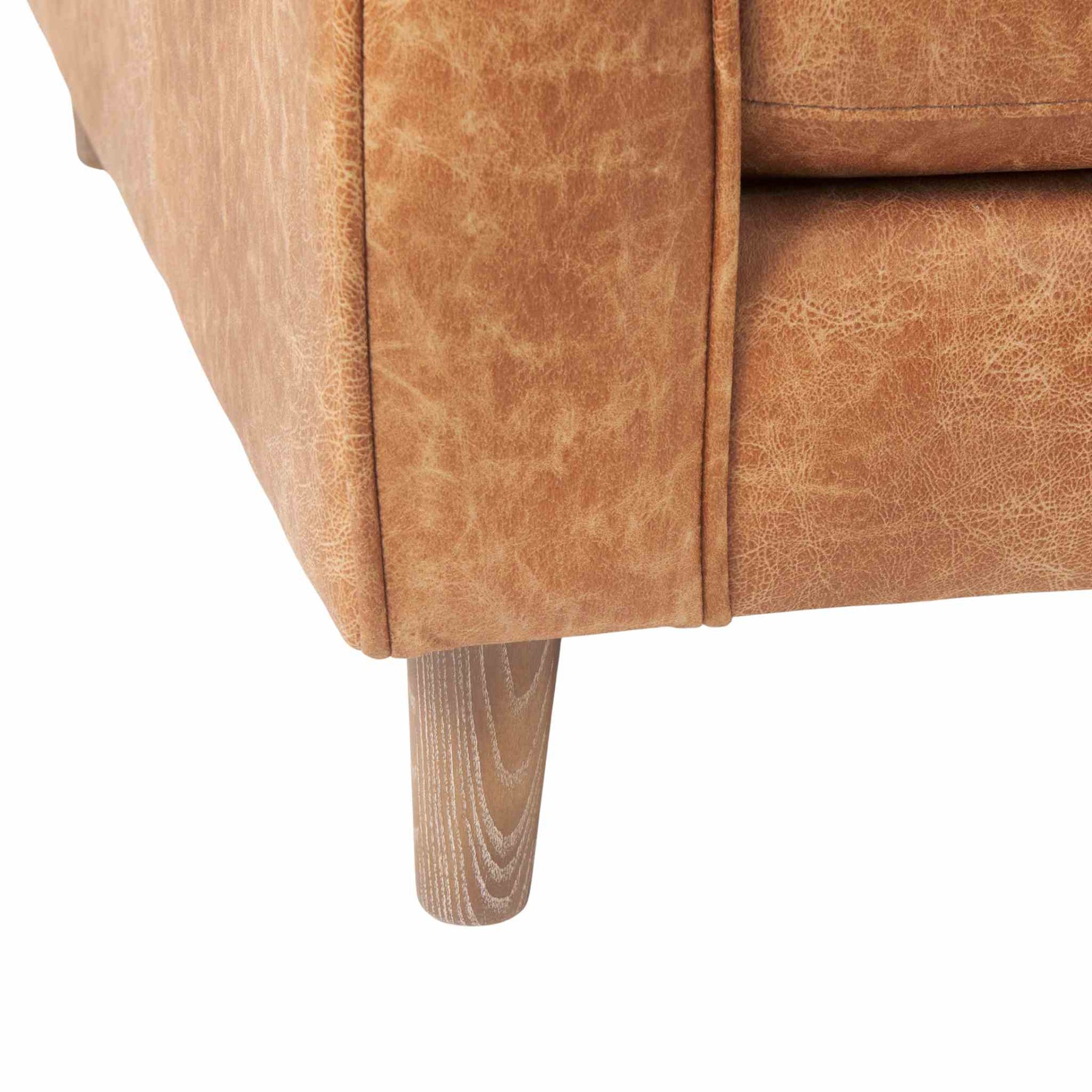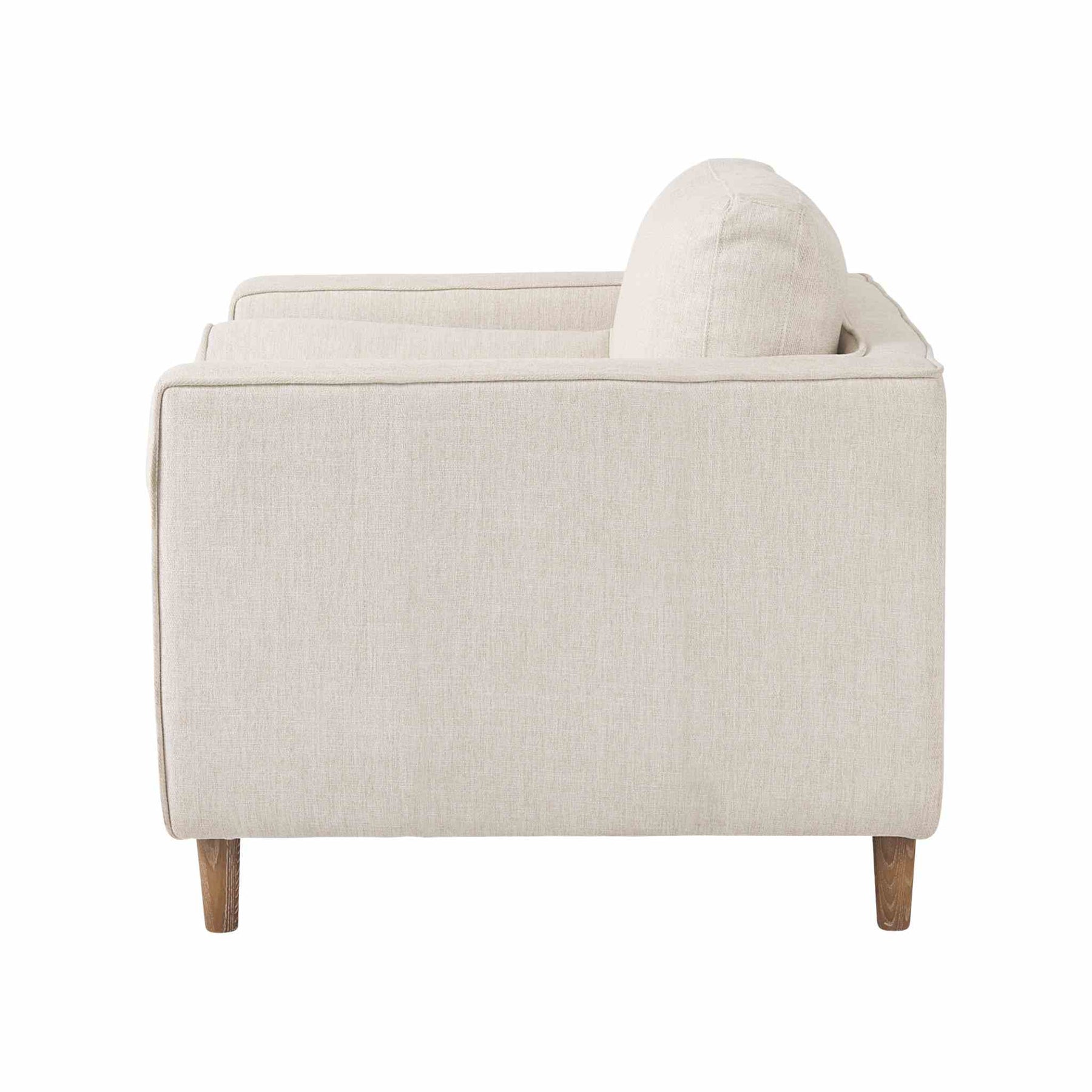 Offering unparalleled comfort, this collection is guaranteed to have you lounging for hours. The armchair is finished in either a cream colour fabric or a cognac faux leather, with four solid, medium brown wood legs that ensure exceptional stability and sturdiness.